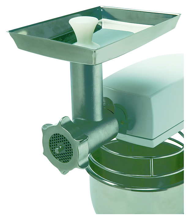 Насадка-мясорубка предназначена для изготовления фарша из мяса, используется совместно с миксерами Bear Varimixer 62/3mm TEDDY 5L. В комплект поставки входит нож и диск с отверстиями 3 мм, плунжер и лоток для мяса. Характеристики: