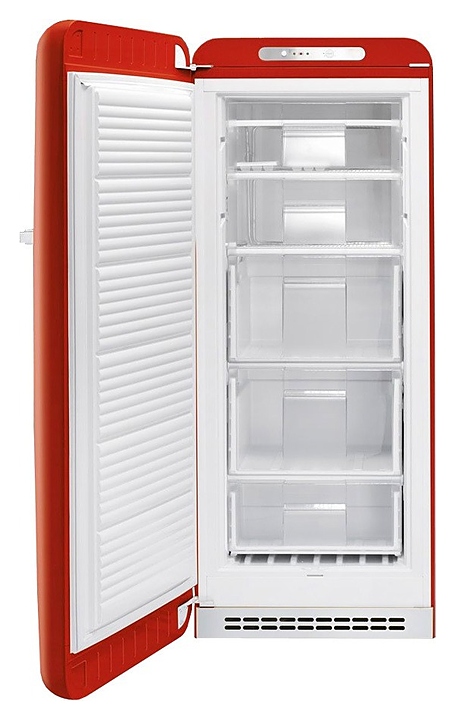 Морозильник Smeg CVB20LR1 создает все необходимые условия для замораживания и дальнейшего хранения продуктов, максимально исключая потерю полезных веществ. Кроме того холодильник отличается оригинальным дизайном в стиле 50-х годов и оснащен фурнитурой серебристого цвета. Особенности: