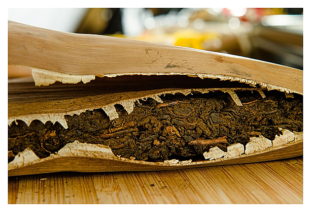 Чай Пуэр плитка в бамбуковом листе №1 Шу 250 г