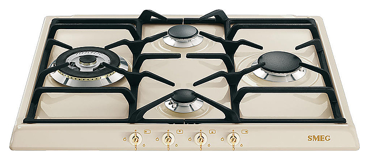 Управление газовой варочной панели Smeg SPR864PGH происходит с помощью поворотных переключателей. Оборудование относится к серии Coloniale. Варочная панель легко подвергается санитарной обработке. В комплект входят позолоченная и латунная фурнитура и жиклеры для сжиженного газа G30. Дополнительные характеристики: