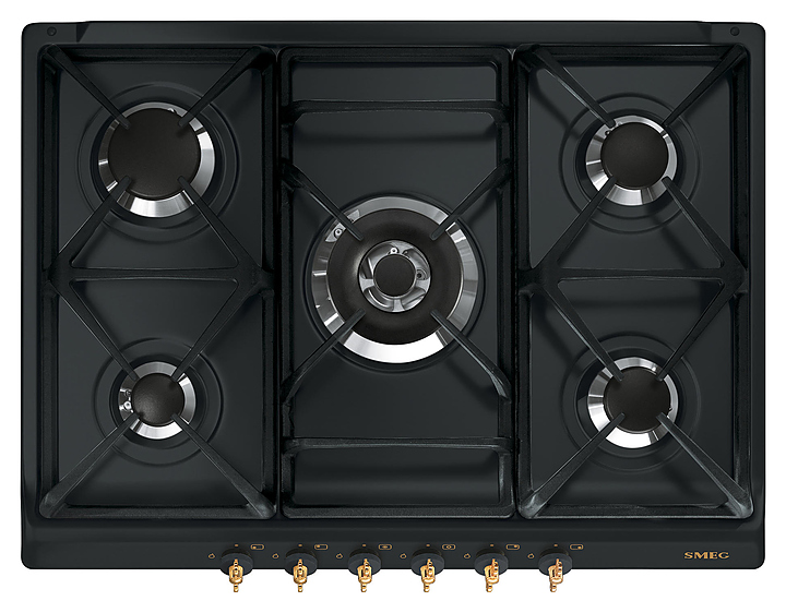 Управление газовой варочной панели Smeg SPR876AGH происходит с помощью поворотных переключателей. Оборудование относится к серии Coloniale. Варочная панель легко подвергается санитарной обработке. В комплект входят позолоченная и латунная фурнитура и жиклеры для сжиженного газа G30. Дополнительные характеристики: