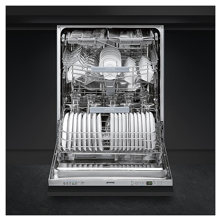 Полностью встраиваемая посудомоечная машина Smeg STP364S отлично подходит для любого типа кухонь. Прибор оснащен панелью управления из нержавеющей стали. Программы / функции / опции: