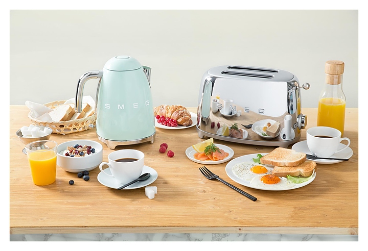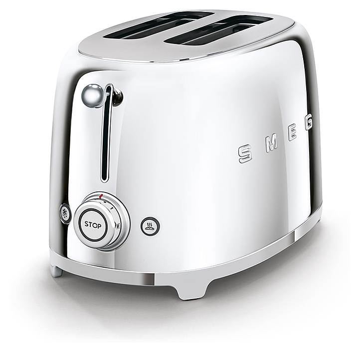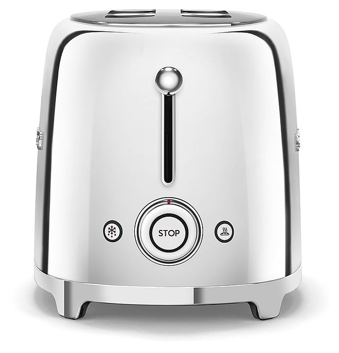 Тостер Smeg TSF01SSEU используется для обжаривания ломтиков тостового хлеба. С помощью дополнительно приобретаемых держателей тостер также можно применять для подогрева булочек или сэндвичей. Прибор отличается уникальным дизайном благодаря исполнению в стиле 50-х годов. В комплект поставки входит съемный поддон из нержавеющей стали для крошек. Особенности: