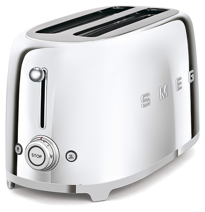 Тостер Smeg TSF02SSEU используется для обжаривания ломтиков тостового хлеба. С помощью дополнительно приобретаемых держателей тостер также можно применять для подогрева булочек или сэндвичей. Прибор отличается уникальным дизайном благодаря исполнению в стиле 50-х годов. В комплект поставки входит съемный поддон из нержавеющей стали для крошек. Особенности: