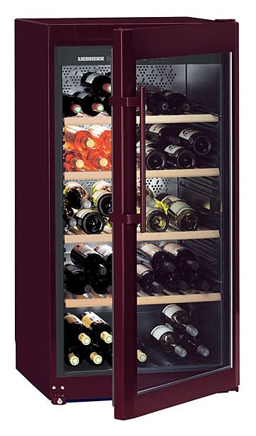 Liebherr WK 2977 — компактный и практичный винный шкаф элегантного бордово-коричневого цвета в котором можно разместить 108 бутылок вина объёмом 0,75 л. Новейшие системы охлаждения, стильный дизайн, компактность и эргономичность удовлетворят требованиям даже самого искушенного ценителя вин. Это устройство позволит сохранить уникальный аромат и все вкусовые оттенки вина, и вы сможете по достоинству оценить вкус благородного напитка, который состарится должным образом и раскроет Вам весь свой букет. В винном шкафу используется специальная циркуляционная технология охлаждения, а поступающий воздух очищается угольным фильтром, что позволяет сохранить свежесть внутри устройства. Также Liebherr WK 2977 оснащён системой защиты от детей и звуковой сигнализацией, которая сработает, если дверца устройства случайно не закроется полностью. Температура задаётся в диапазоне от +5°C до +20°C. Управление