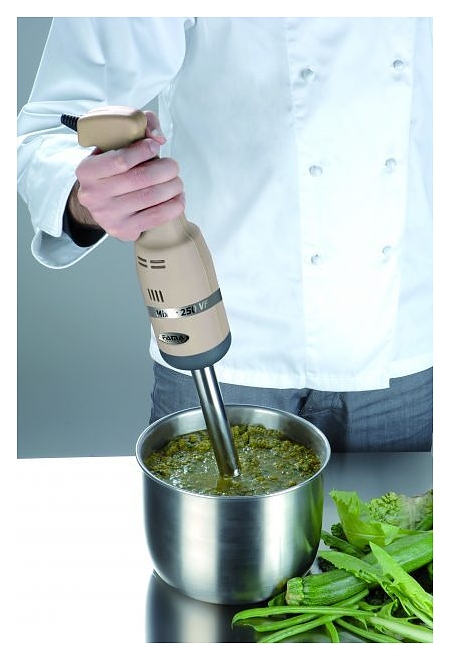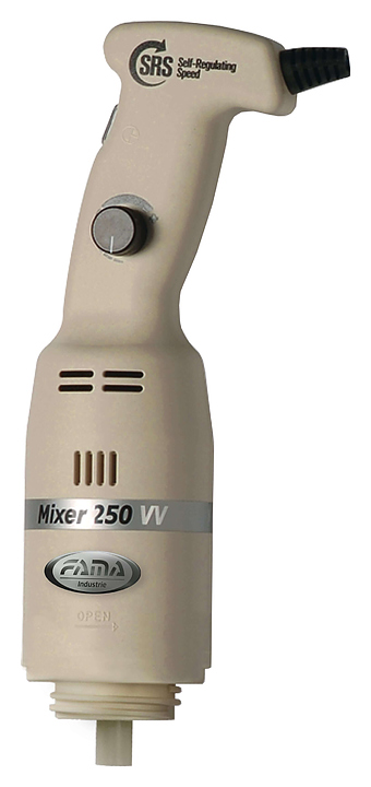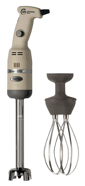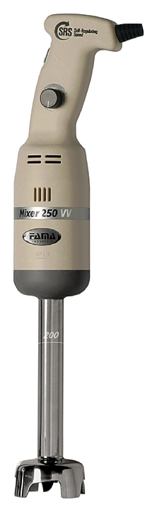 Ручной миксер Fama Mixer 250 VV предназначен для приготовления супов-пюре, майонеза, муссов, картофельного и овощного пюре, взбивания жидкого теста для блинчиков на предприятиях общественного питания и торговли. Корпус выполнен из пластика, съемная насадка и все контактирующие с пищевыми продуктами детали - из нержавеющей стали. В комплект поставки входят венчик и нож. Особенности: