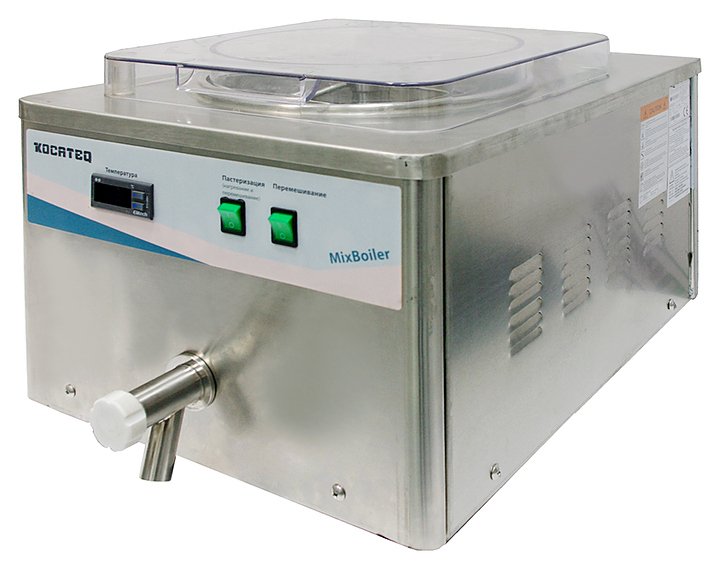 Пастеризатор Kocateq MIX10C предназначен для приготовления заварных кремов и соусов, пастеризации смеси и дальнейшего ее использования в батч-фризере, где происходит процесс приготовления мороженого, на предприятияx общественного питания и торговли. Модель оснащена защитным термостатом. Корпус выполнен из нержавеющей стали AISI 304. Особенности: