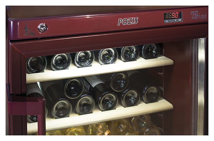 Винный шкаф POZIS ШВ-52 создает особые условия для хранения вин, сохраняя их первозданный вид, вкус и аромат. Тонированный стеклопакет на двери предотвращает проникновение солнечных лучей, ухудшающих качество вина, особая циркуляция воздуха поддерживает нужный уровень влажности, а деревянные полки снижают уровень вибрации от компрессора. Для удобства пользования цифровой дисплей, отображающий температуру, располагается над дверью в зоне постоянной видимости. Особенности: