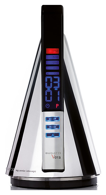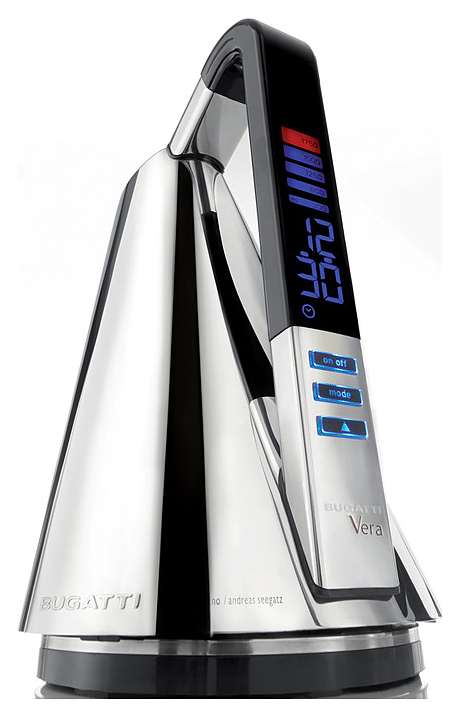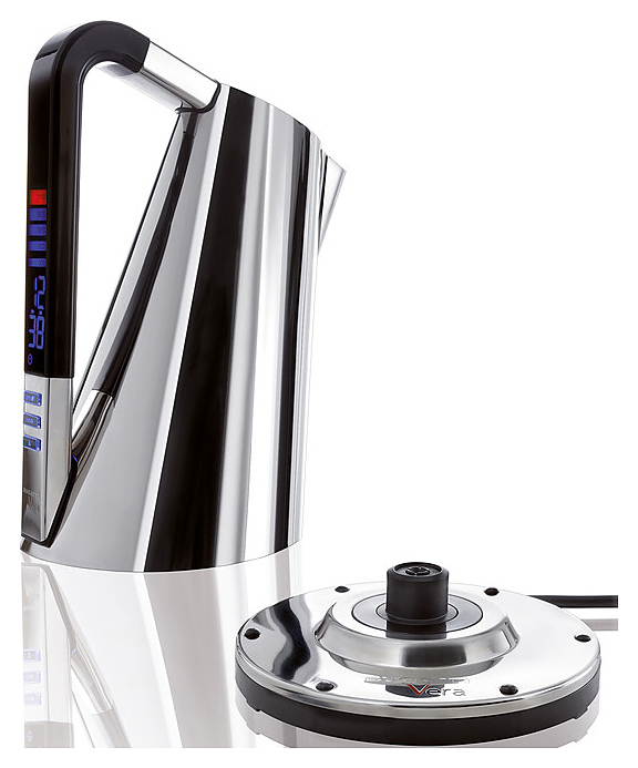 Чайник Bugatti VERA позволяет вскипятить или нагреть воду в различном температурном диапазоне, что особенно важно при заваривании зеленого или этнических травяных чаев. Нагревательный элемент в форме диска в совокупности с конической формой чайника способствуют экономии электроэнергии до 25%, не снижая при этом скорости нагрева воды. Яркий и необычный дизайн от Андре Сигец делает данную модель стильной деталью интерьера. Особенности:
