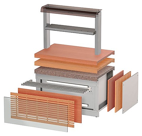 Тумба-подставка ATESY Регата представляет собой вспомогательный элемент для установки столешниц линии раздачи. Модуль состоит из подставки и столешницы соответствующего ей размера, которая может быть дополнена отверстиями для установки одноярусной или двуярусной полки. Конструкция оснащена розеткой на 220 В и выключателем для включения подсветки модуля, которые расположены со стороны обслуживающего персонала. Тумба-подставка полностью выполнена из высококачественной нержавеющей стали AISI 430. Характеристики: