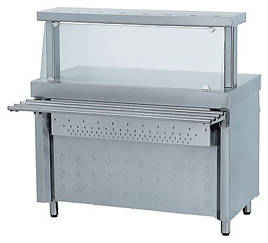 Нейтральный стол ATESY Белла-Нева-2004 используется для установки дополнительного оборудования, а также раздачи готовых блюд и напитков. Оборудование предназначено для использования в составе линии раздачи. Со стороны обслуживающего персонала стол оснащен розеткой, позволяющей подключать к сети дополнительное оборудование. В нижней части конструкции располагается шкаф с 3 распашными дверцами и 1 вместительной внутренней полкой. Подсветка фасадной части конструкции, расположенная под столешницей, делает весь модуль более заметным для клиентов. В комплект поставки входят направляющая для подносов и одноярусная полка, выполненные из высококачественной нержавеющей стали. Особенности: