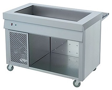 Холодильный стол ATESY Белла-Нота-2005 передвижная предназначен для непродолжительного хранения и демонстрации продуктов на предприятиях общественного питания, в отделах готовой продукции гипермаркетов. В ванне стола можно разместить стандартный комплект из пяти гастроемкостей: 530х325х100 - 1шт, 265х325х150 - 4 шт. В комплект поставки входит направляющая для подносов (1200х320 мм) из нержавеющей стали. Особенности: