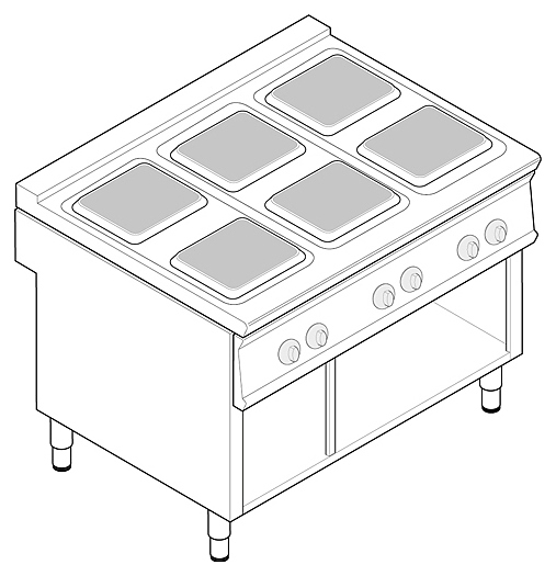 Электрическая плита Tecnoinox PCS12FE7 серии Tecno74 предназначена для приготовления первых, вторых, третьих блюд в наплитной посуде на предприятиях общественного питания и торговли. Модель оснащена независимым термостатом для каждой конфорки и дополнительным термостатом для предотвращения перегрева и сокращения потребления энергии. Корпус изготовлен из нержавеющей стали AISI 304. Оборудование может быть расположено у стены или как центральный остров. Особенности: