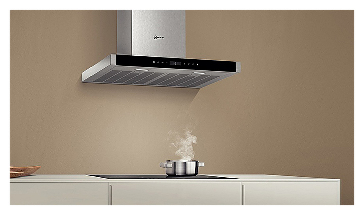 Кухонная вытяжка Neff D76MT64N1, устанавливаемая над варочной поверхностью, эффективно удаляет запахи, возникающие в процессе приготовления пищи, и очищает воздух от лишних примесей. Плюсом данного устройства является мощный двигатель, обеспечивающий практически бесшумную работу даже при интенсивном режиме. Корпус вытяжки из нержавеющей стали придает ей прочность и стильный внешний вид. Особенности: