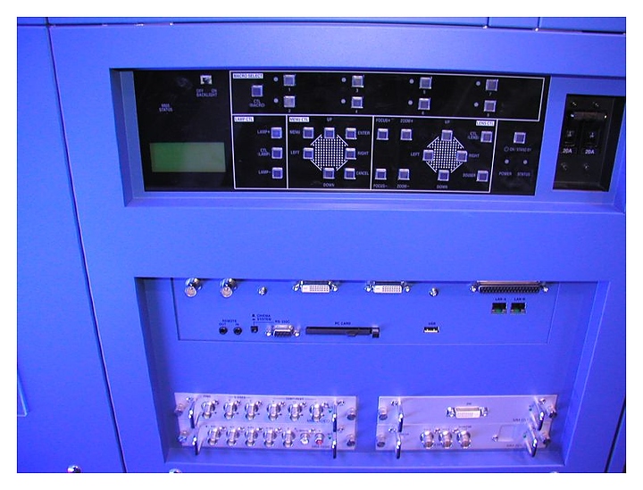 Головная часть проектора: 700 x 1100 x 503 мм (исключая линзы, светозащитную бленду и систему отвода тепла);