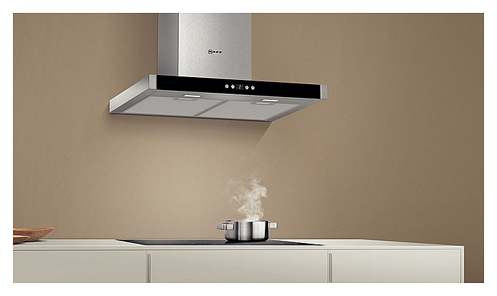 Кухонная вытяжка Neff D76MH52N1, устанавливаемая над варочной поверхностью, эффективно удаляет запахи, возникающие в процессе приготовления пищи, и очищает воздух от лишних примесей. Плюсом данного устройства является мощный двигатель, обеспечивающий практически бесшумную работу даже при интенсивном режиме. Корпус вытяжки из нержавеющей стали придает ей прочность и стильный внешний вид. Особенности: