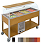 Шведский стол Metalcarrelli 6940.3RAL предназначен для кратковременного хранения и демонстрации продуктов и готовых блюд на предприятиях общественного питания, а также в розничных торговых точках. Устройство оснащено удобной в использовании панелью управления с цифровым термостатом, термометром и выключателем с сигнальной лампой. Верхняя часть стола снабжена ванной, выполненной из нержавеющей стали AISI 304, предназначенной для установки в нее нескольких гастроемкостей стандартного типа. Ванна закрыта прозрычным акриловым куполом, открывающимся с передней стороны, оснащенным вместительной деревянной полкой, расположенной сверху. Гастроемкости в комплект поставки не входят. Особенности: