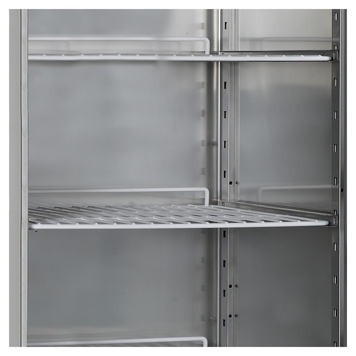 Морозильный шкаф TEFCOLD RF1010 предназначен для заморозки и длительного хранения продуктов, полуфабрикатов и мороженого на предприятиях общественного питания и торговли. Корпус и внутренняя обшивка выполнены из нержавеющей стали AISI 304. Особенности: