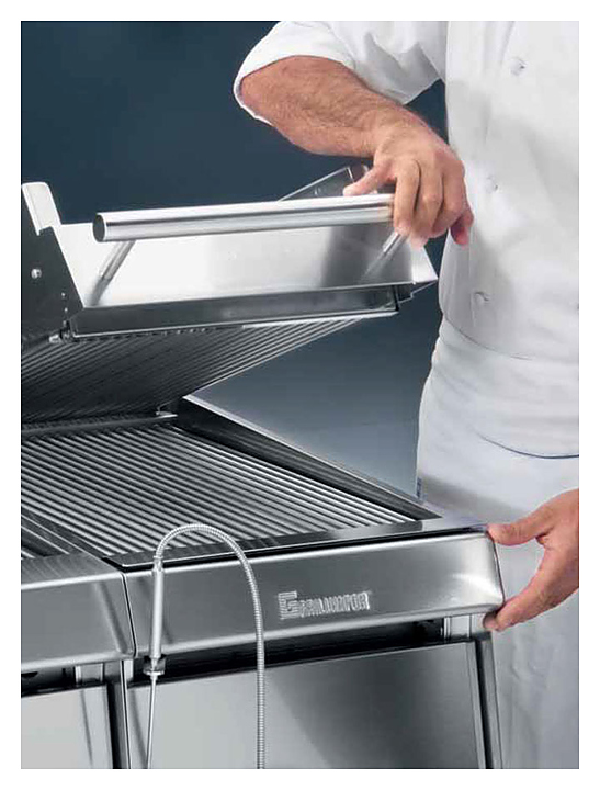 Вапо-гриль Arris GE418EL предназначен для приготовления различных блюд и подогрева сэндвичей на предприятиях общественного питания и торговли. В конструкции прибора используется технология водяной ванны, благодаря которой создается паровой эффект и блюда получаются с аппетитной корочкой, сочными, нежными и не пригорают. Модель оснащена 2 решетками, расположенными друг над другом, и специальным датчиком температуры. В зависимости от толщины приготавливаемых продуктов высоту решеток можно регулировать, увеличивая расстояние до 60 мм. Все детали гриля выполнены из нержавеющей стали AISI 304. В комплект поставки входит термощуп, с помощью которого можно измерять температуру в готовящихся или готовых продуктах. Особенности: