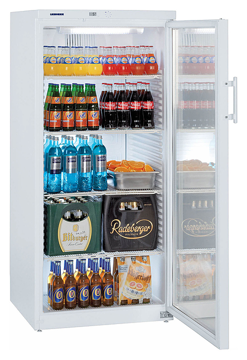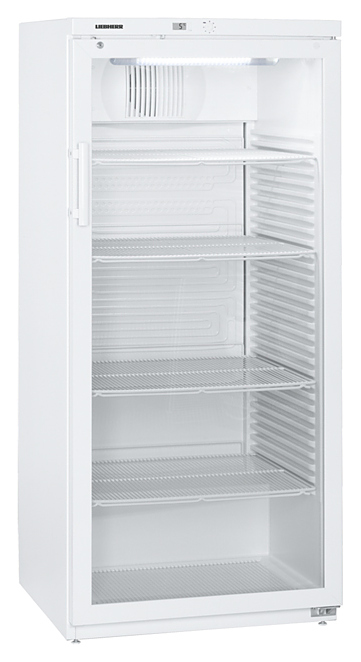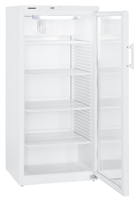 Холодильный шкаф Liebherr FKv 5443 предназначен для охлаждения и кратковременного хранения скоропортящихся продуктов и напитков на предприятиях общественного питания и торговли. Модель оснащена механическим управлением и цифровой индикацией температуры. Внутренняя прокладка выполнена из белого полистирола, дверь - из стекла, корпус и ручка - из стали, покрытие решеток - из пластика. Особенности: