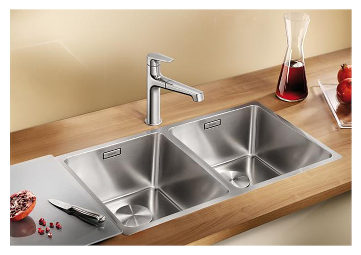 Мойка Blanco Andano 340/340-IF предназначена для рационального планирования рабочего места на кухне. Модель оснащена двумя удобными чашами большого объема. Клапан-автомат организовывает автоматический отвод воды из чаши мойки. Корзинчатый вентиль, расположенный в сливном отверстии, выполняет функцию фильтра. Чаши имеют закругленные углы для облегчения процесса очищения их от загрязнений. Мойка изготовлена из нержавеющей стали, что обеспечивает долгий срок эксплуатации и безопасность использования. В комплект поставки входят отводная арматура с переливом, 2 корзинчатых вентиля 3 ½" с клапан-автоматом для основной чаши и набор крепежа. Уплотнитель приобретается отдельно. Дополнительные характеристики: