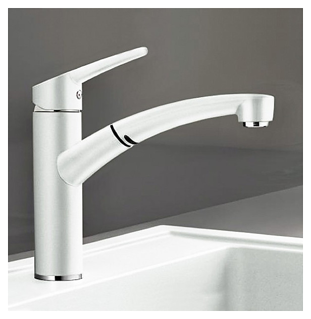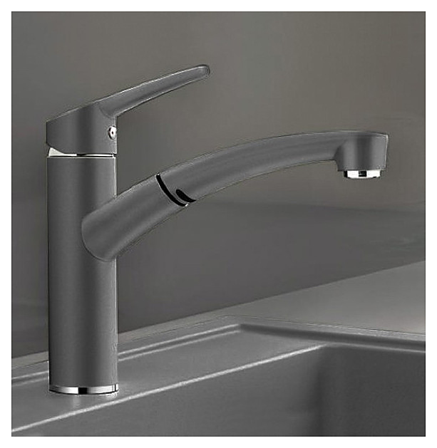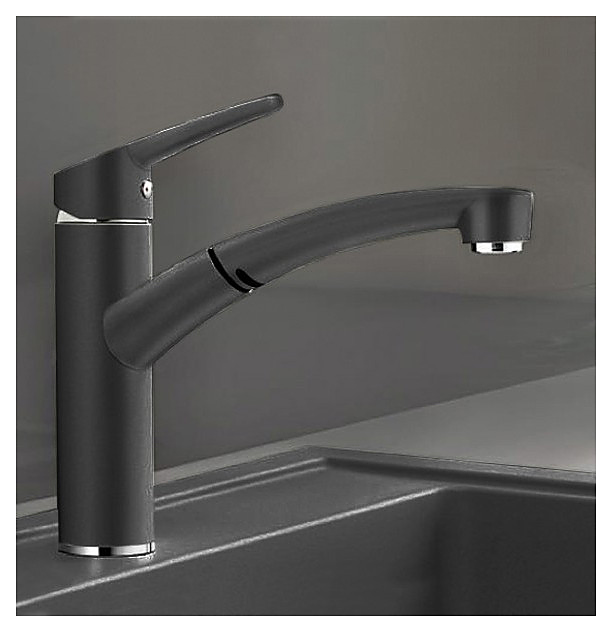 Смеситель Blanco Nea-S SILGRANIT отлично сочетается с мойками из гранита. Модель отличается минималистичным дизайном и высоким изливом, благодаря которому можно без труда наполнить водой вазы или большие кастрюли. Изделие выполнено из хромированной стали с гранитным покрытием. Особенности: