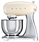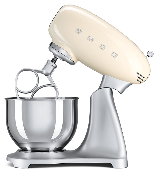 Планетарный миксер Smeg SMF01CREU предназначен для взбивания кремов, муссов, а также для приготовления пюре, соусов и коктейлей в частных домах и квартирах. Модель выполнена в стиле 50-х годов. Корпус изготовлен из литого алюминия, шестеренки - из закаленной стали. Комплектация:
