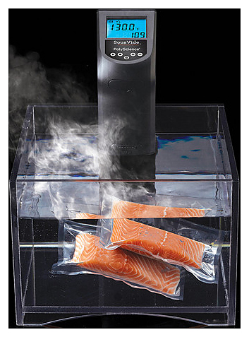 Технология Sous Vide сочетает в себе приготовление в вакуумной упаковке и при низких температурах, быстрое охлаждение и регенерацию. Преимуществами Sous Vide является получение продуктов высокого качества, сокращение потерь при тепловой обработке и увеличение срока хранения. В вакуумной упаковке сохраняется вкус, аромат и полезные микроэлементы. Запахи различных продуктов не смешиваются. Этапы работы технологии Sous Vide: