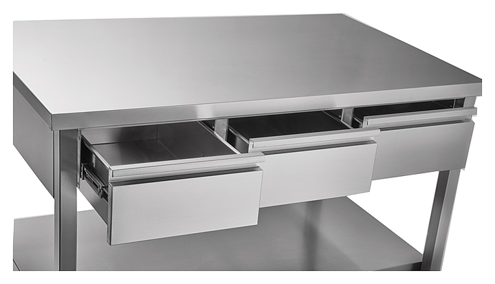 Производственный стол Abat СТН-7-1 предназначен для раскатки теста, обработки ингредиентов для приготовления блюд, хранения кухонных принадлежностей и продуктов, не требующих специального температурного режима на предприятиях общественного питания и торговли. Модель оснащена регулируемыми по высоте ножками. Конструкция выполнена из нержавеющей стали. Дополнительные характеристики: