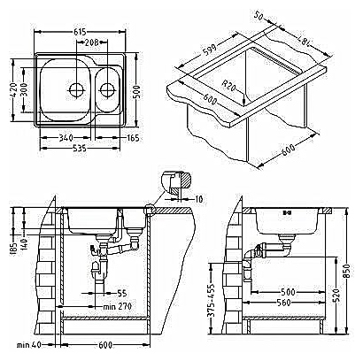 • Размеры мойки (ВхШхГ): 18.5х61.5х50 см