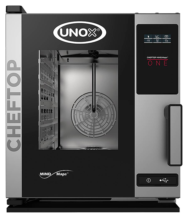 Пароконвектомат UNOX XECC-0523-E1R серии ChefTop MIND.Maps предназначен для приготовления различных блюд, выпечки хлебобулочных и кондитерских изделий на предприятиях общественного питания и торговли, в пекарнях и кондитерских. Модель оснащена подсветкой посредством внешней LED-лампы и C-образными с зубчатыми нишами направляющими. Внутреннее открывающееся стекло облегчают чистку и обеспечивают максимальную гигиену. Камера с закругленными углами выполнена из нержавеющей стали AISI 304, направляющие - из профилированной стали, дверной замок - из высокопрочного самосмазывающегося технополимера, внутренний штифт дверной ручки - из углеродного волокна. Оборудование должно быть подключено к сети водоснабжения (вентиль 3/4″). В комплект поставки входят 4 пластиковых держателя, набор для подключения к водопроводной сети (шланг подачи воды, механический фильтр и невозвратный клапан 3/4) и набор «Starter Kit» (8 саморезов, гаечный ключ и наклейка). Листы для выпечки в комплект поставки не входят и приобретаются отдельно. Режимы выпечки: