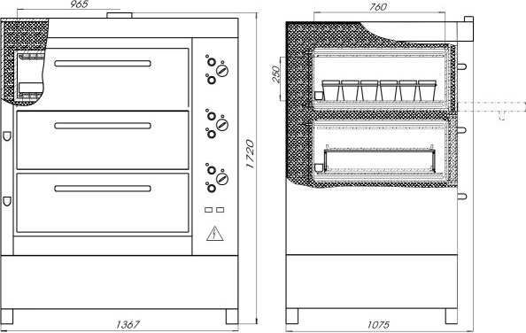 Хлебопекарная печь Восход ХПЭ-750/3 используется на предприятиях общественного питания или в малых пекарнях для выпечки широкого ассортимента хлебобулочных и кондитерских изделий, а также для приготовления (термообработки) мясных, рыбных, овощных и других блюд. Высокая камера выпекает формовой хлеб, исключая подгорание верхней корки от контакта с верхними ТЭНами. Крышка пекарной камеры выполнена из углеродной стали с эмаль-покрытием. Особенности:
