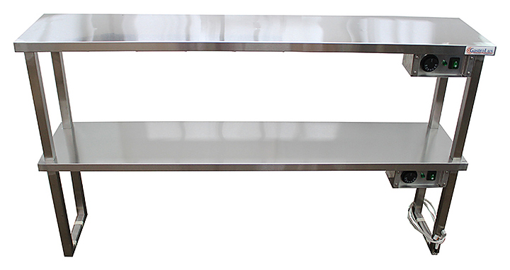 Тепловая полка Gastrolux ПНТО2-154/П предназначена для демонстрации и поддержания блюд в подогретом состоянии на предприятиях общественного питания и торговли. Конструкция выполнена из нержавеющей стали AISI 430. Модель устанавливается на 4-х стойках диаметром 25 мм. Подсветка заказывается отдельно. Возможно изготовление нестандартных размеров.