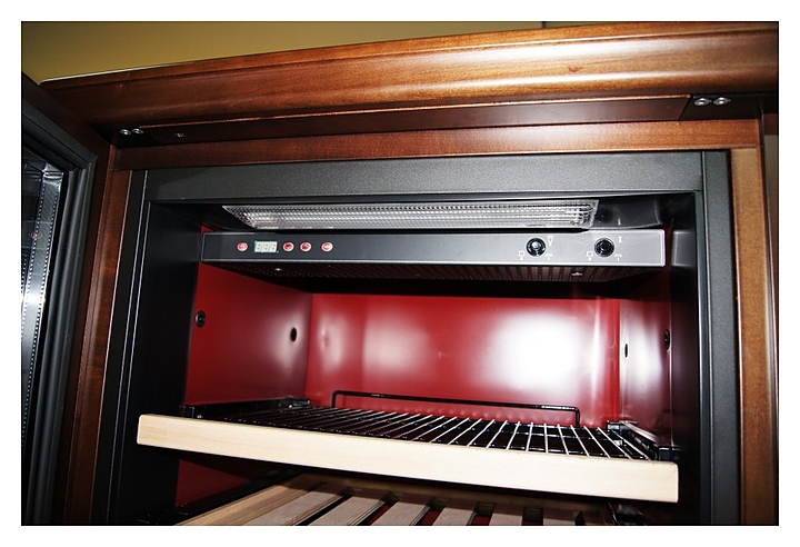 Винный шкаф IP Industrie CEXS 2401 серии Wood создает оптимальные условия для сохранения всех вкусовых свойств разливного вина. Модель оснащена электронным термостатом, цифровым дисплеем, подсветкой и замком. Корпус выполнен из крашенного металла, встроенного в деревянный короб, двери - из двойного стекла с защитой от ультрафиолетовых лучей, стандартные и полу-полки - из крашенного металла, выдвижные - из дерева. Особенности: