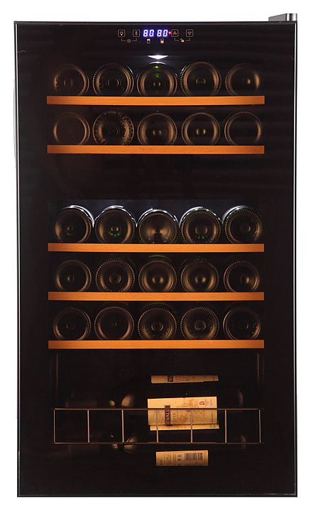 Винный шкаф Dunavox DX-29.80DK серии Home создает оптимальные условия для сохранения всех вкусовых свойств разливного вина. Модель оснащена цифровым дисплеем и подсветкой. Дверь выполнена из тонированного стекла, стандартные полки - из дерева. Шкаф исполнен как отдельностоящий. При желании его можно встроить в интерьер, соблюдая необходимые зазоры по сторонам. В комплект поставки входит съемное хромированное демонстрационное ограждение. Особенности: