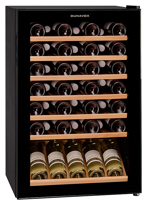 Винный шкаф Dunavox DX-48.130K серии Home создает оптимальные условия для сохранения всех вкусовых свойств разливного вина. Модель оснащена цифровым дисплеем и подсветкой. Дверь выполнена из тонированного стекла, стандартные полки - из дерева. Шкаф исполнен как отдельностоящий. При желании его можно встроить в интерьер, соблюдая необходимые зазоры по сторонам. Шкаф вмещает 40 бутылок, а при использовании съемного хромированного ограждения можно разместить дополнительные 8. Особенности:
