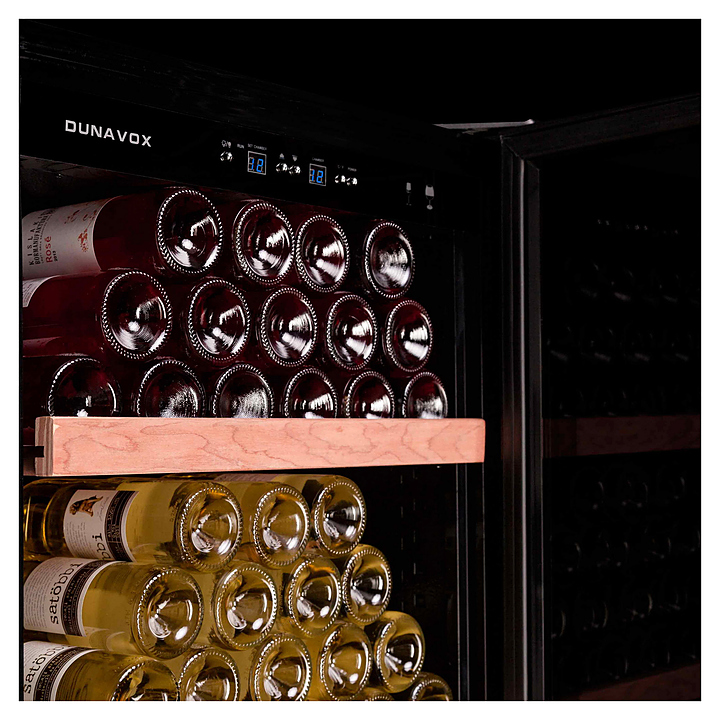 Винный шкаф Dunavox DX-200.450K серии Horeca создает оптимальные условия для сохранения всех вкусовых свойств разливного вина. Модель оснащена сенсорной панелью управления и LED-подсветкой синего цвета. Корпус выполнен из окрашенного металла, дверь - из стальной рамы и тонированного стекла с защитой от ультрафиолетовых лучей, полки - из сапеле (древесина), накладная ручка двери - из нержавеющей стали. Особенности: