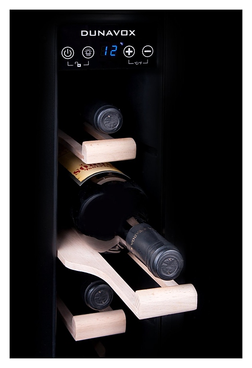 Винный шкаф Dunavox DX-7.22BK серии Exclusive создает оптимальные условия для сохранения всех вкусовых свойств разливного вина. Модель оснащена сенсорной панелью управления и LED-подсветкой синего цвета. Корпус выполнен из окрашенного металла, дверь - из рамы черного цвета и тонированного стекла с защитой от ультрафиолетовых лучей, полки - из нелакированного бука, накладная ручка двери - из нержавеющей стали. Особенности:
