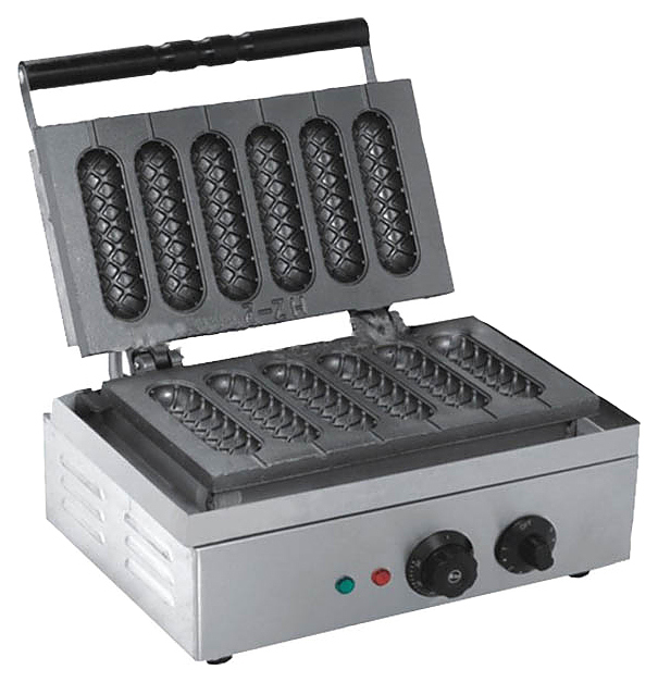 Аппарат для корн-догов Starfood 1620038 используется на предприятиях общественного питания и торговли. Основой корн-догов является жидкое вафельное или пикантное тесто на основе кукурузной муки, в котором обволакивается и запекается сосиска. Корпус выполнен из нержавеющей стали, формы - из чугуна. Характеристики: