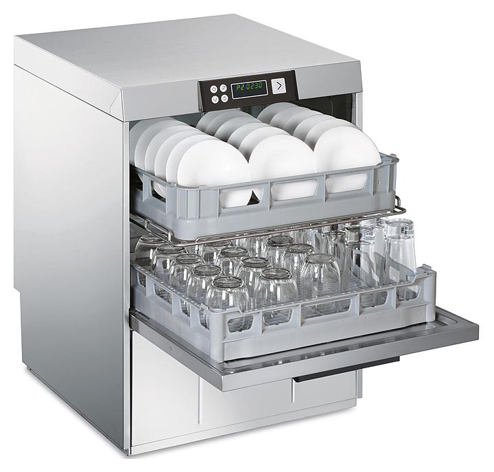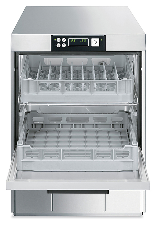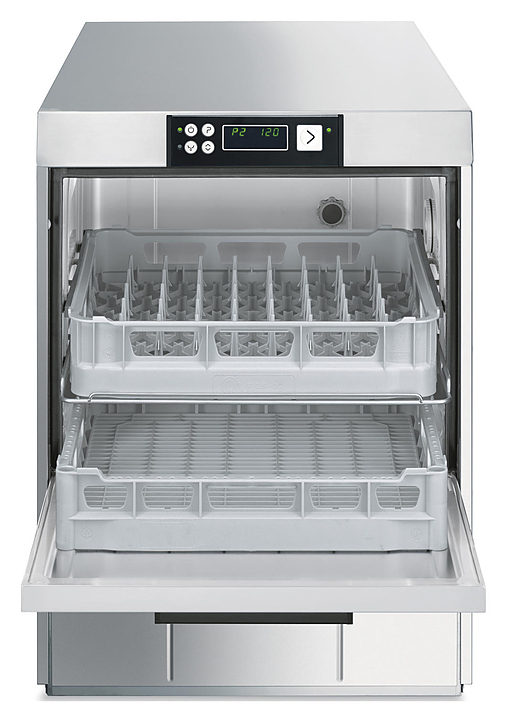 Посудомоечная машина с фронтальной загрузкой Smeg CW522SD серии Topline используется на предприятиях пищевой промышленности, общественного питания и торговли для мойки тарелок, стаканов, чашек и др. посуды. Оборудование оснащено электронным управлением, моечным баком с закругленными углами и сбалансированной дверцей с двойной теплоизоляцией. Корпус и моечный бак имеет двойные стенки, 2 ополаскивающих и 2 моющих рукава выполнены из нержавеющей стали AISI 304. Комплектация:
