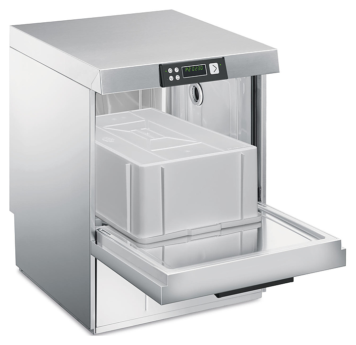 Посудомоечная машина с фронтальной загрузкой Smeg CW522SD серии Topline используется на предприятиях пищевой промышленности, общественного питания и торговли для мойки противня 600х500 мм и корзины 600х400х350 мм. Оборудование оснащено электронным управлением, моечным баком с закругленными углами и сбалансированной дверцей с двойной теплоизоляцией. Корпус и моечный бак имеет двойные стенки. Корпус, фильтр моечного бака, 2 ополаскивающих и 2 моющих рукава выполнены из нержавеющей стали AISI 304. Комплектация: