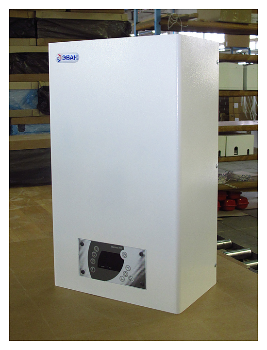Отопительный котел ЭВАН Warmos RX-9,45 класса «Комфорт» используется в квартирах, коттеджах, торговых, производственных и других помещениях для индивидуального отопления. Оборудование оснащено интуитивно-понятным дисплеем, встроенным термостатом с регулировкой температуры и аварийным самовозвратным датчиком, который защищает от перегрева и срабатывает при температуре 92±3 °С. Особенности: