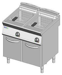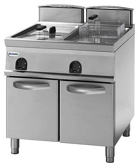 Фритюрница Tecnoinox FR87FE7 серии Tecno74 предназначена для приготовления блюд в большом объёме масла на предприятиях общественного питания и торговли. Модель оснащена нагревательными элементами, расположенными под наклоном. Оборудование изготовлено из нержавеющей стали AISI 304 и может быть расположено у стены или как центральный остров. В комплект поставки входят 2 корзины с крышками и фильтр для масла. Особенности: