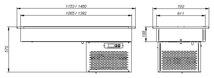 Встраиваемая холодильная ванна Марихолодмаш ВВХС-1,48/0,7 предназначена для демонстрации, охлаждения и кратковременного хранения холодных блюд на предприятиях общественной питания и торговли. Корпус оборудования выполнен из нержавеющей стали. Ванна подходит для работы при температуре окружающего воздуха от 12 до 25 °С. В комплект поставки входит пульт управления. Особенности: