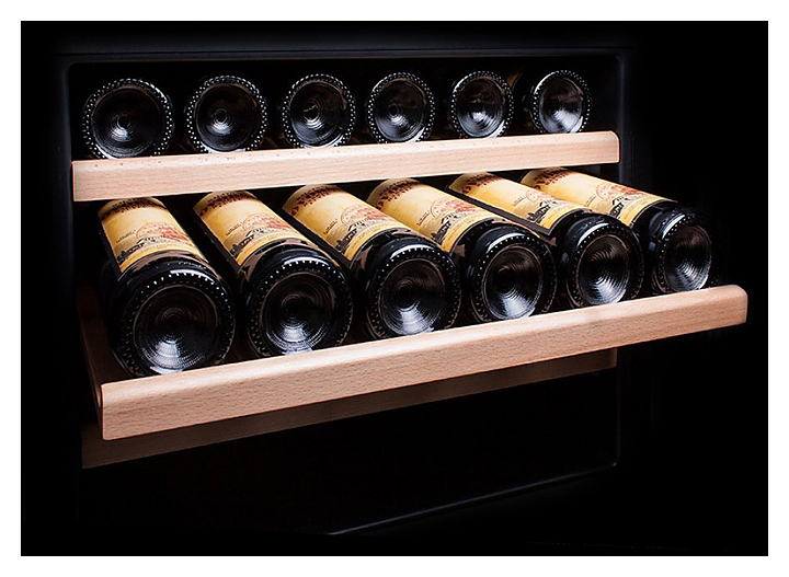 Винный шкаф Dunavox DAU-52.146B серии Exclusive создает оптимальные условия для сохранения всех вкусовых свойств разливного вина. Модель оснащена сенсорной панелью управления и LED-подсветкой синего цвета. Корпус выполнен из окрашенного металла, дверь - из рамы черного цвета и тонированного стекла с защитой от ультрафиолетовых лучей, полки - из нелакированного бука, накладная ручка двери - из нержавеющей стали.
