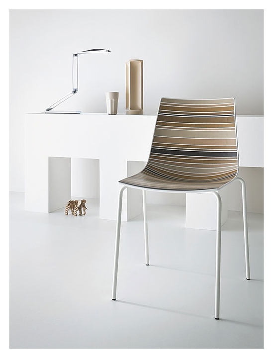 Стул с полосатым рисунком Gaber Colorfive подойдет для меблировки квартир, частных домов, отелей, кафе и баров. Ножки выполнены из хромированной или окрашенной в белый цвет металлической рамы, сиденье - из технополимера. Изделие поставляется в разобранном виде. Цена указана за 1 шт. Дополнительные характеристики: