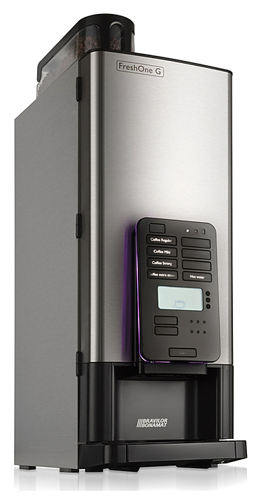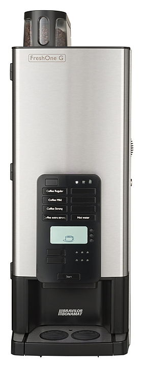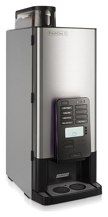 Автоматическая кофемашина Bravilor Bonamat FreshOne G используется на предприятиях общественного питания и торговли для приготовления кофе и горячей воды, предназначенной для супа, каши, чая и других горячих напитков. Модель оснащена цифровым дисплеем, с помощью которого можно выбрать предварительно установленные программы, отдельным краном горячей воды, индикаторами заполнения мусора и удаления накипи и раздвижным поддоном для капель. Корпус выполнен из нержавеющей стали. Особенности: