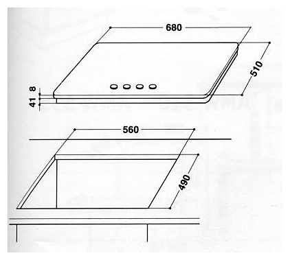 Простота в очистке и изящный внешний вид. Безопасность В случае, если пламя было погашено (либо порывом ветра из открытого окна, либо выкипающей водой) система безопасности незамедлительно отключит подачу газа. Электроподжиг Для простоты в обращении поджиг осуществляется нажатием и поворотом рукоятки. Размеры