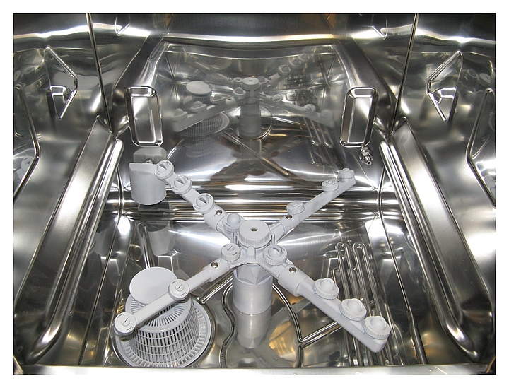 Стаканомоечная машина Kromo Dupla 37 предназначена для качественной очистки тарелок, кухонных принадлежностей, столовых приборов, стаканов и бокалов на предприятиях общественного питания. Корпус с двойными стенками выполнен из нержавеющей стали AISI 304. В комплект поставки входят корзина для тарелок, корзина для стаканов и вставка для приборов. Особенности: