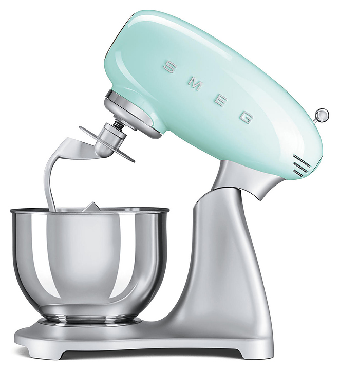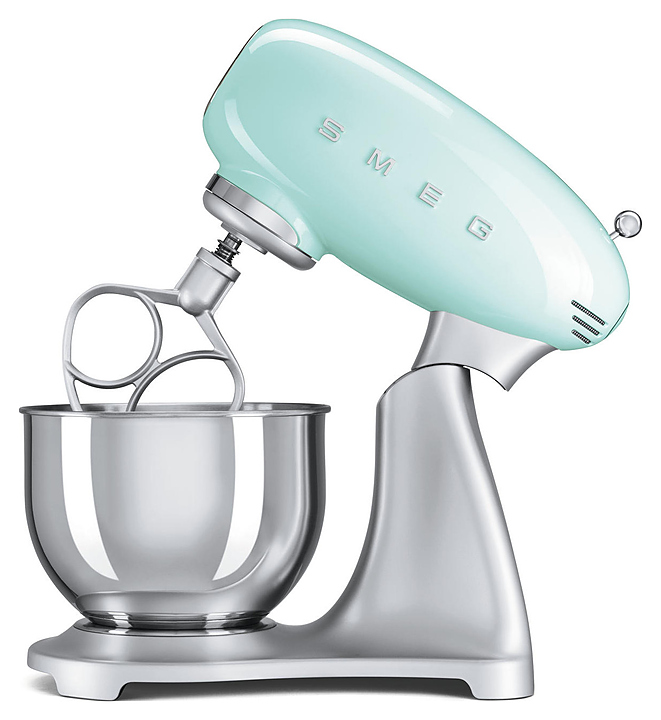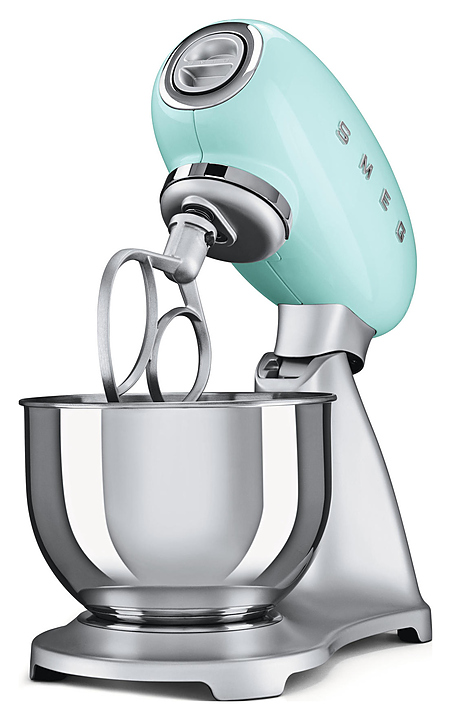 Планетарный миксер Smeg SMF01PGEU предназначен для взбивания кремов, муссов, а также для приготовления пюре, соусов и коктейлей в частных домах и квартирах. Модель выполнена в стиле 50-х годов. Корпус изготовлен из литого алюминия, шестеренки - из закаленной стали. Комплектация: